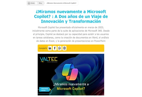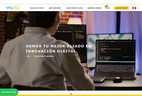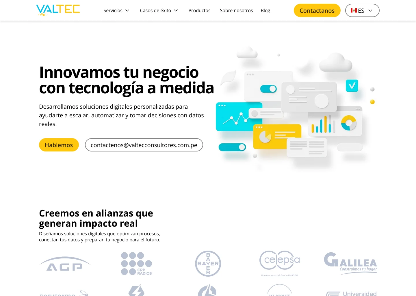 This foundation was complemented by a strategic use of Valtec’s corporate colors, both on the web and in the selection of tones for primary/secondary buttons and services, ensuring chromatic harmony. For a clean, unified visual experience, AI-generated images using Valtec’s palette were incorporated, making the website feel modern and reliable.