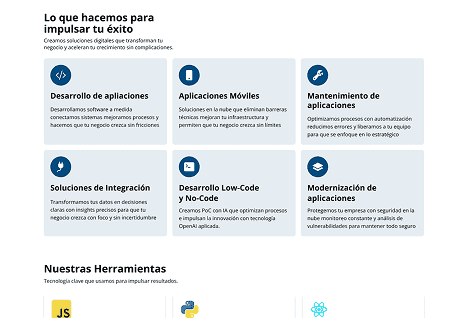 Furthermore, extensive benchmarking research was conducted on reference pages within the software development sector to analyze best practices and their weaknesses. To ensure the client’s vision materialized, the desired style for the new website was discussed, requesting visual references to guide the aesthetic and functional direction of the project. This immersion ensured that the future design would be aligned with business expectations and real user needs.